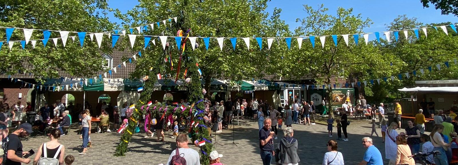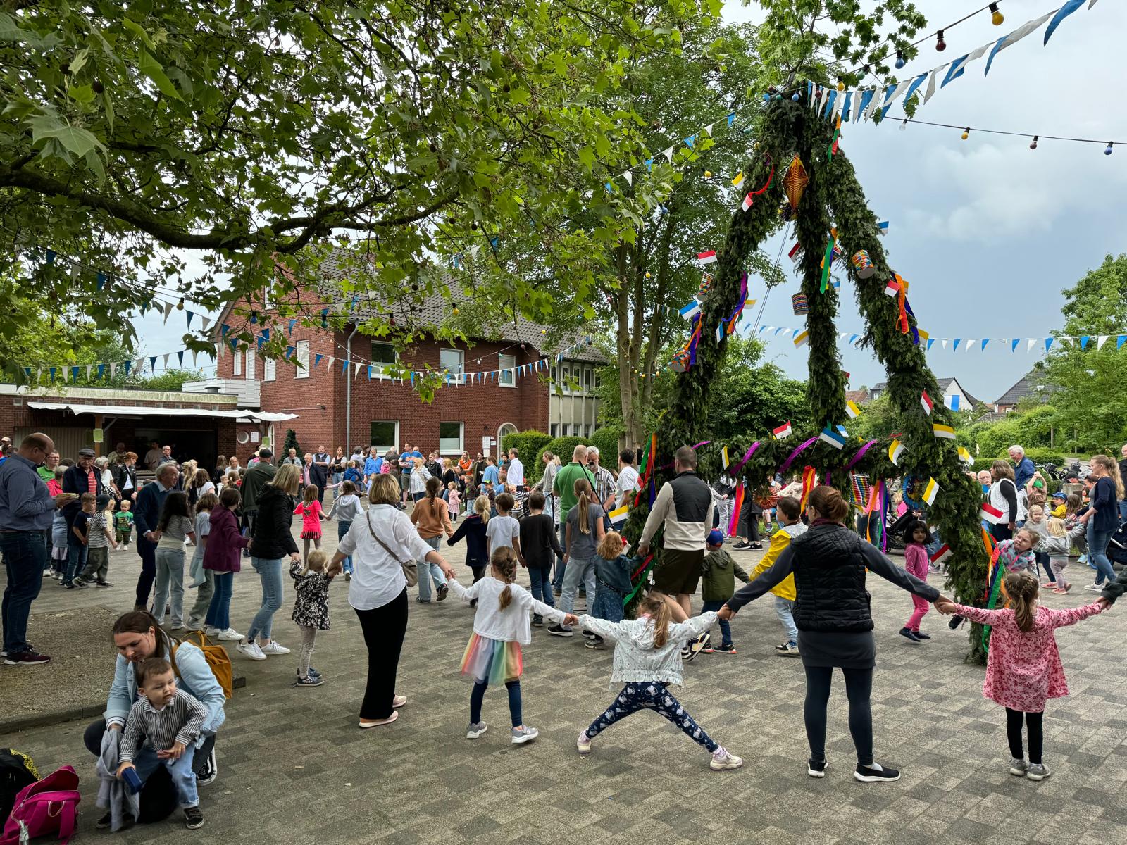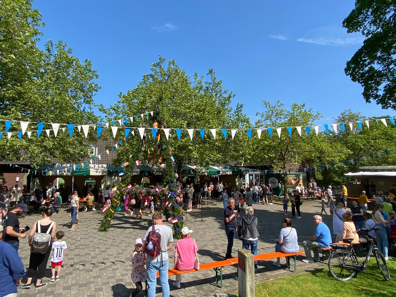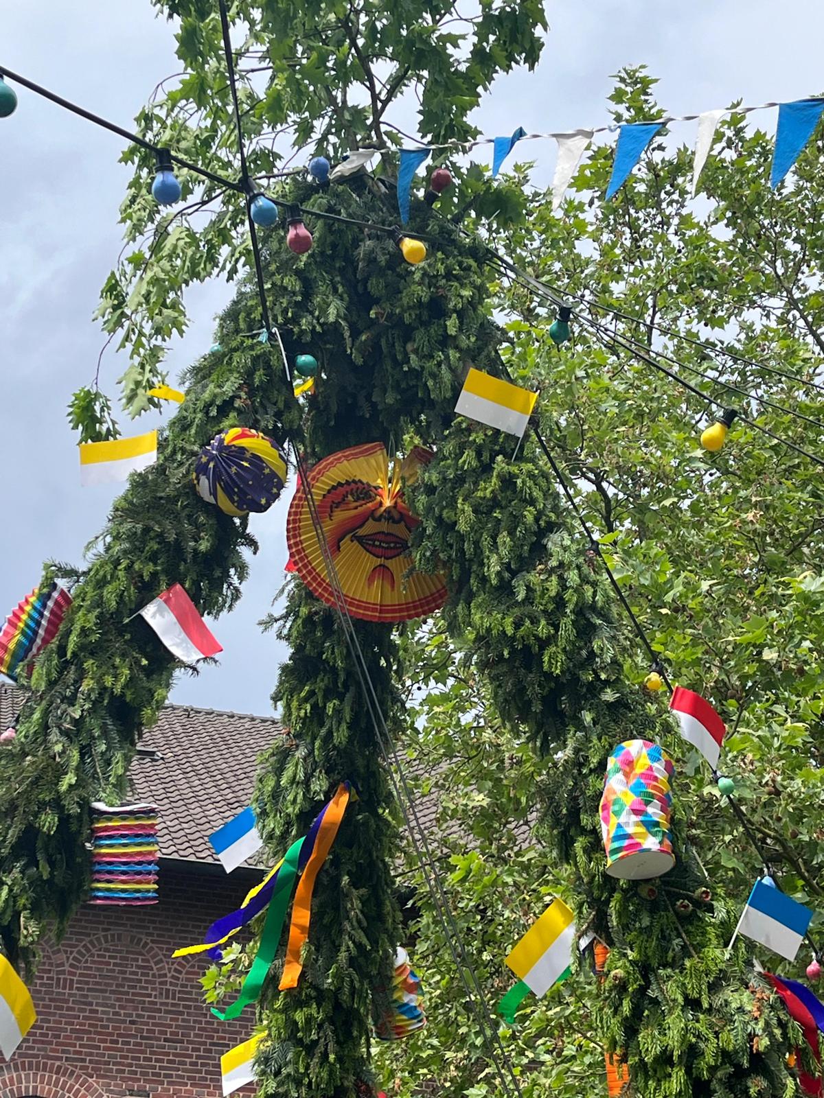 Dieser Maibaum ist unserer Pfingstenstuhl. Im Laufe der Jahrhunderte erhielt der Maibaum einen christlichen Einschlag, und die uralten Lieder, die der Naturverehrung dienten, wurden vermischt mit Liedern der christlichen Religion „