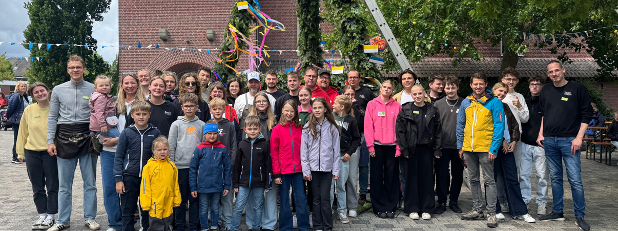 Schreib uns eine E-Mail an „info@pfingstenkranz.de“oder kontaktiere uns bei Instagram.