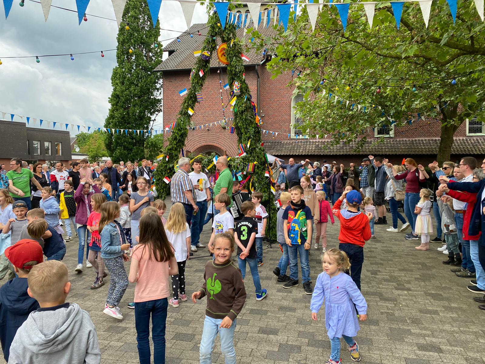Belassen wir es einstweilen dabei, dass die Herkunft unseres Oelder Pfingstenkranzbrauches weitestgehend im Dunkel der Geschichte verborgen bleibt. Freuen wir uns darüber, dass uns ein höchst interessanter, dazu eigenartig schöner und sicher sehr alter Brauch erhalten blieb. Das ist mit der Verpflichtung verbunden, ihn Jahr für Jahr mit neuem Leben zu erfüllen.